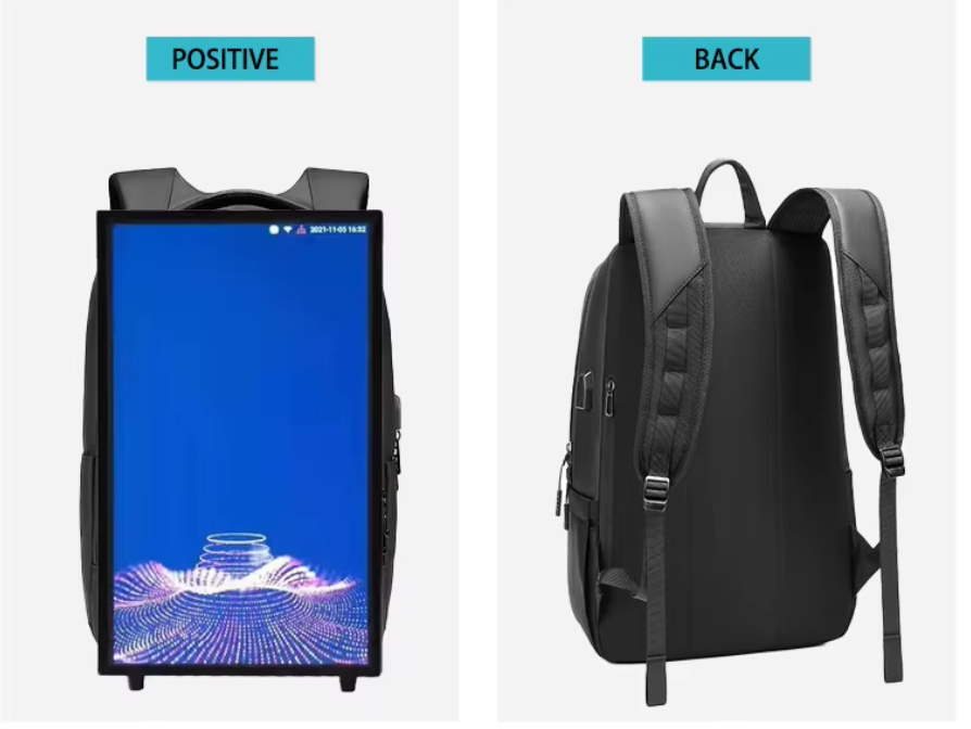 LED బ్యాక్ప్యాక్ వాకర్ బిల్బోర్డ్ వాకింగ్ డిస్ప్లే LCD మొబైల్ డిజిటల్ అడ్వర్టైజ్మెంట్ బాగ్ అడ్వర్టైజింగ్ మెషిన్ సిగ్నేజ్ పోర్టబుల్ బ్యాటరీ