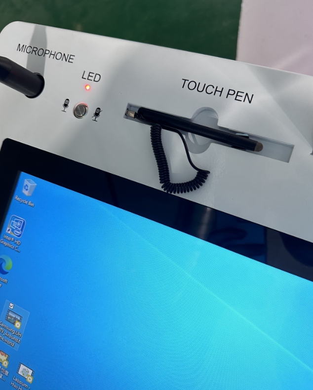 7. డిజిటల్ పోడియంలో నిర్మించిన ఆల్-ఇన్-వన్ పిసి ఉంది, ఇది మైక్రోఫోన్తో ప్రస్తావించబడింది మరియు ఉపరితలంపై దీపం సాకెట్.