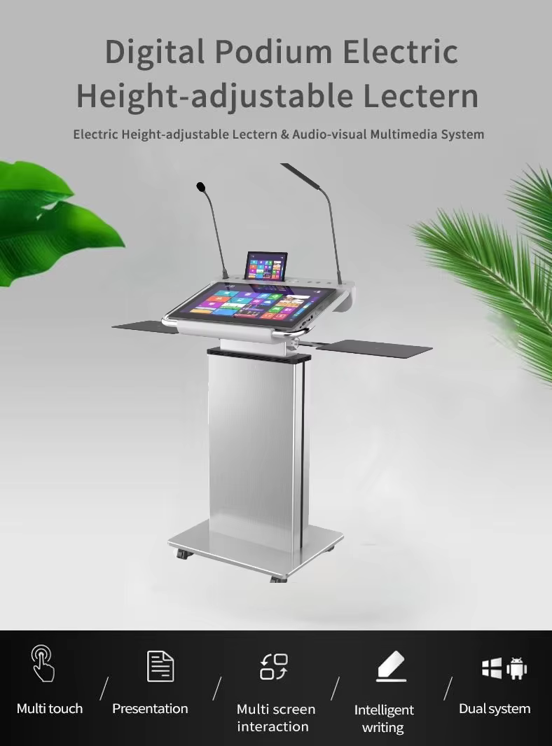 చర్చి పాఠశాల సమావేశ గది కోసం ఒక సమావేశ పోడియం ఇంటరాక్టివ్ టచ్ స్క్రీన్లో లిఫ్టబుల్ డబుల్ స్క్రీన్ పిసిఎపి అన్నీ