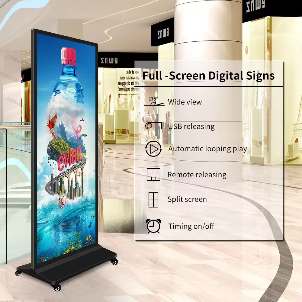 69.3 ఇండోర్ అల్ట్రా-సన్నని ఎల్సిడి ఉచిత స్టాండింగ్ పూర్తి స్క్రీన్ డిజిటల్ సిగ్నేజ్