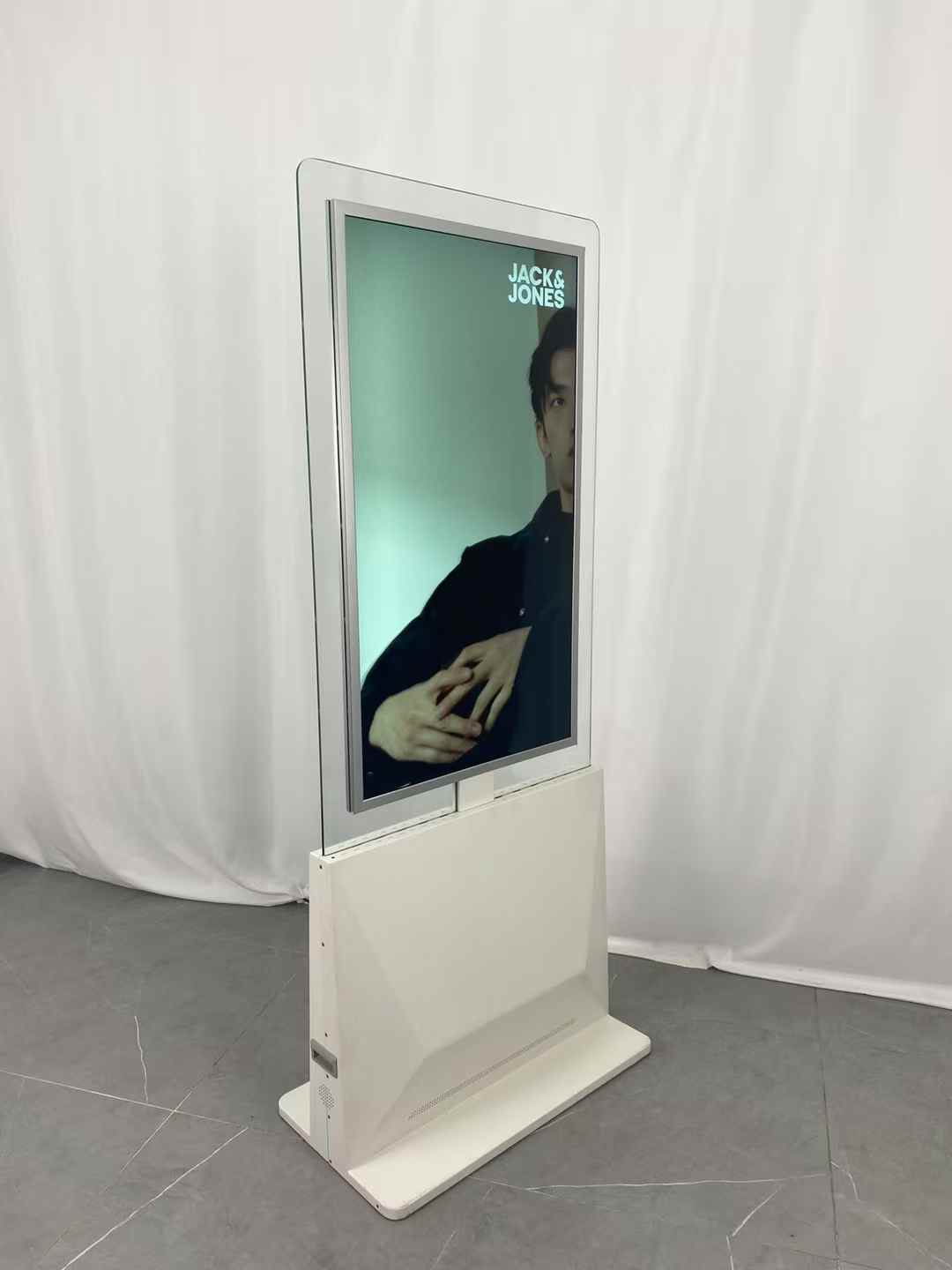 మా టచ్ స్క్రీన్ అల్ట్రా స్లిమ్ డబుల్ సైడెడ్ డిజిటల్ సిగ్నేజ్ ప్రేక్షకులను దాని సొగసైన డిజైన్ మరియు అధునాతన లక్షణాలతో ఆకర్షించడానికి రూపొందించబడింది. స్లిమ్ ప్రొఫైల్ మరియు డబుల్ సైడెడ్ డిస్ప్లేతో, ఇది గరిష్ట దృశ్యమానతను మరియు ప్రభావాన్ని అందిస్తుంది, ఇది షాపింగ్ మాల్స్, విమానాశ్రయాలు మరియు వాణిజ్య భవనాలు వంటి అధిక ట్రాఫిక్ ప్రాంతాలకు పరిపూర్ణంగా ఉంటుంది.